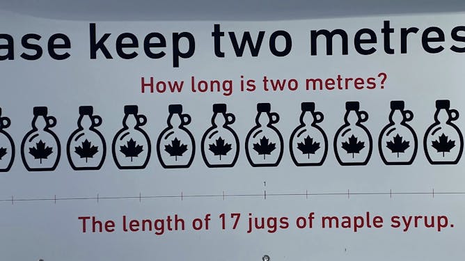 Has your capacity to eyeball the distance of six feet, two metres or one hockey stick sharpened since the pandemic started due to social distancing signs? If you think so, perhaps like me, you’ll need to break out the measuring tape. Today in The Conversation Canada, Egan J. Chernoff of the University of Saskatchewan, professor of mathematics education, takes issue with common social distancing signs in Canada.