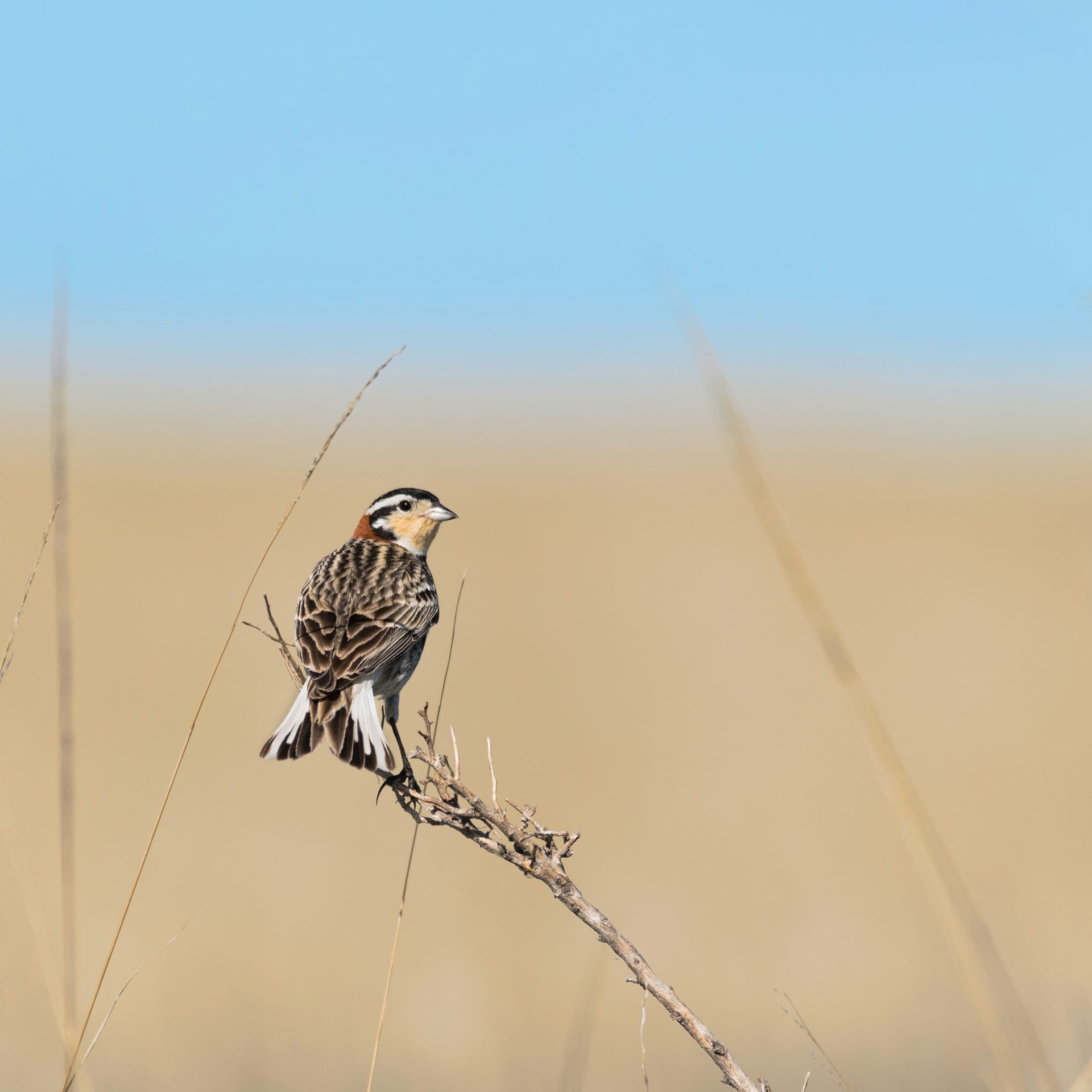 The chestnut-collared longspur spends the winter in Mexico and the southern United States; the Canadian prairies are its breeding grounds.