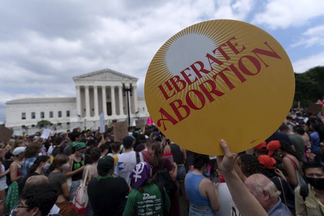 Abortion-rights activists gather outside the Supreme Court in Washington, D.C., in June 2022 after the court ended constitutional protections for abortion that had been in place nearly 50 years.