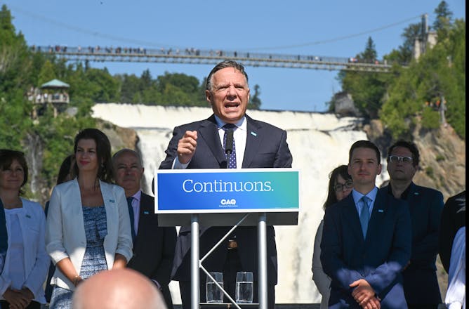 Coalition Avenir Québec Leader François Legault launches his campaign at the Montmorency Falls with candidates, Aug. 28, 2022 in Québec City.