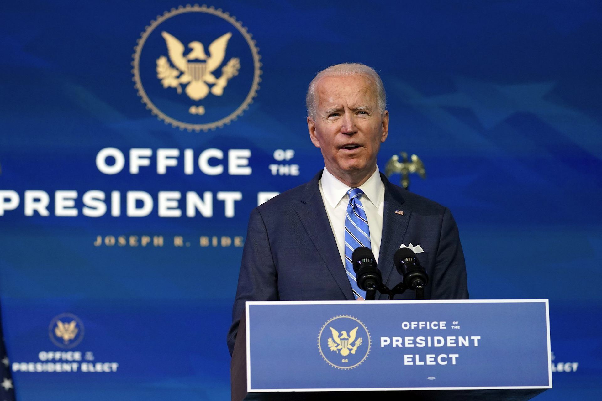 Le Président élu Joe Biden parle de la pandémie COVID-19 à Wilmington, au Delaware, le 14 janvier 2021.