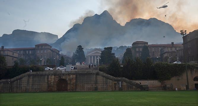 A wildfire spread across the slopes of Table Mountain to the University of Cape Town.
