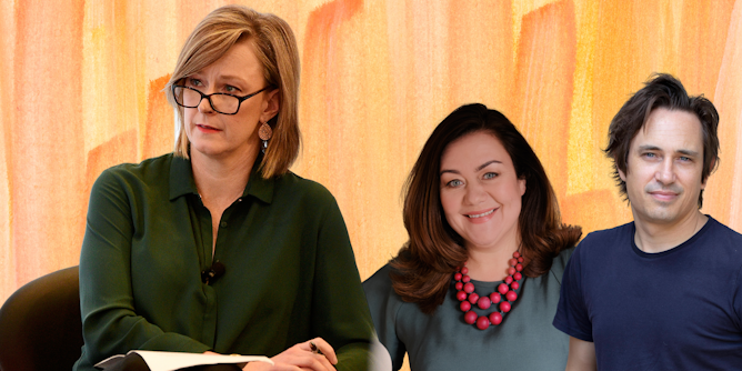 Leigh Sales (Bianca De Marchi/AAP), Samantha Maiden and Trent Dalton.