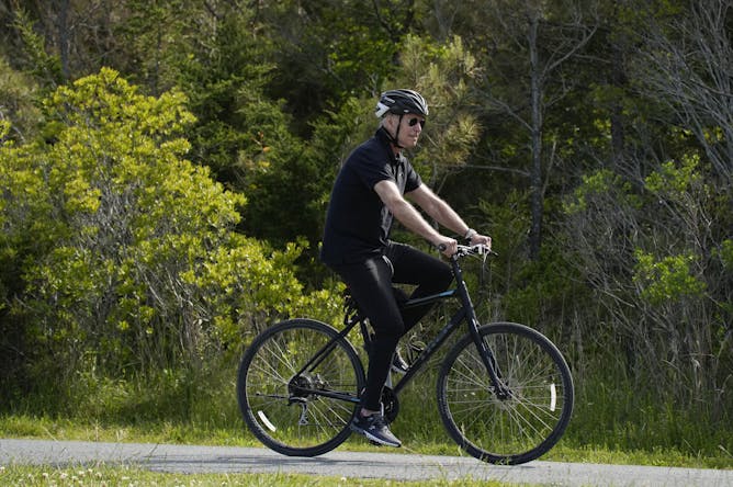 U.S. President Joe Biden goes on a bike ride in Rehoboth Beach, Del., on May 14, 2023.