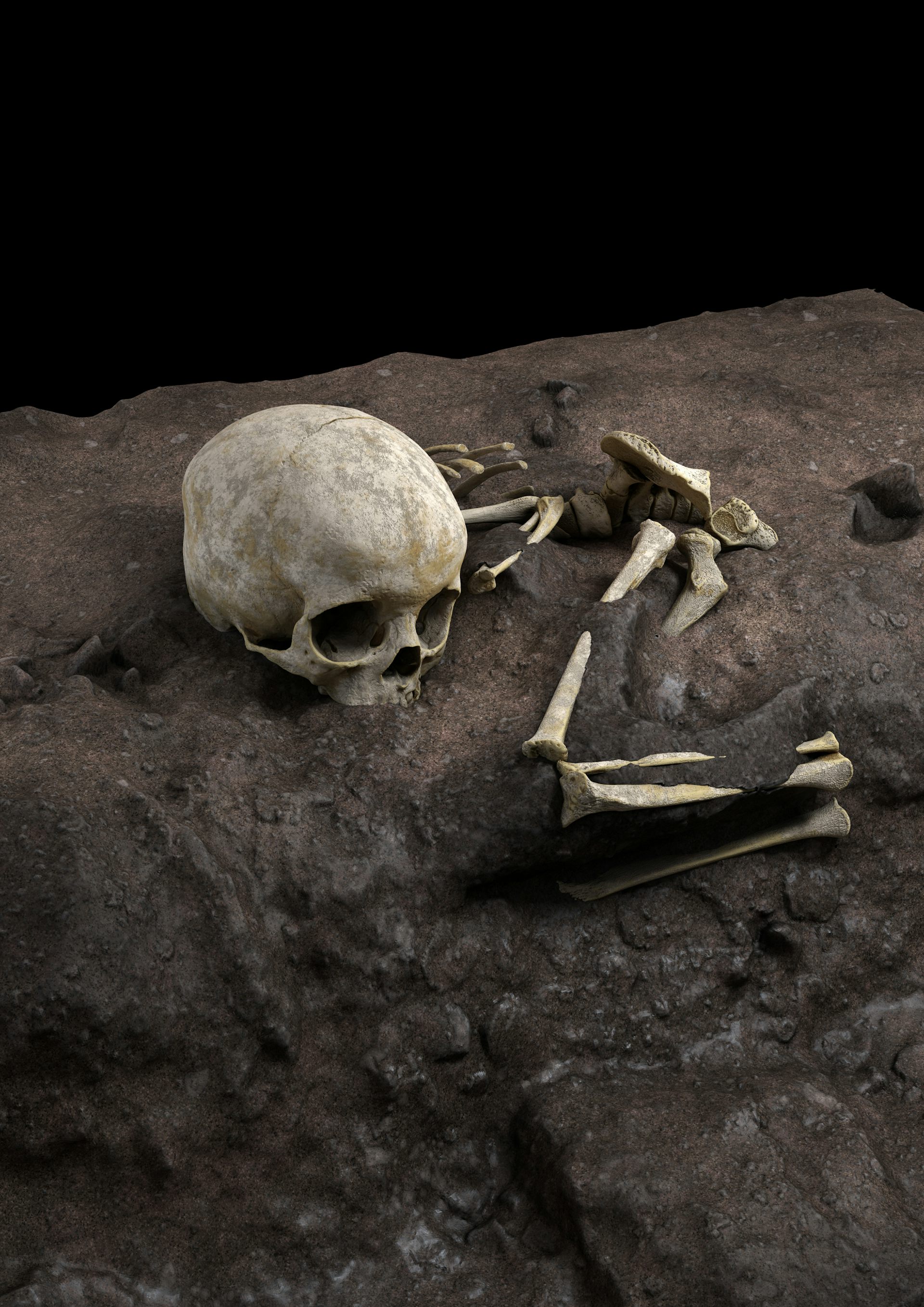 Reconstruction virtuelle de la position de Mtoto dans la fosse mortuaire.