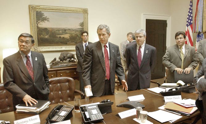 On Sept. 17, 2001, Transportation Secretary Norman Mineta, left, met with President George W. Bush and others.