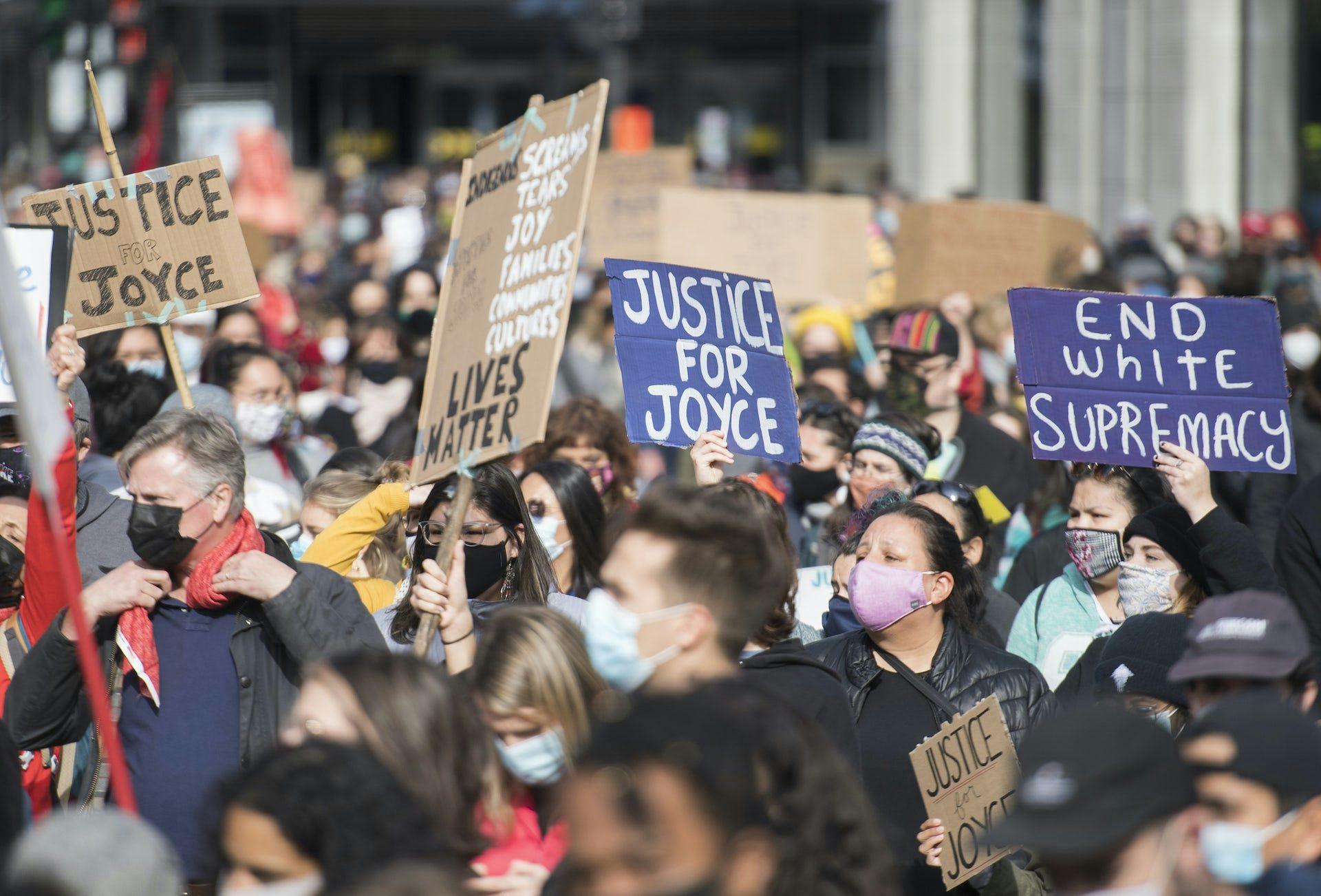 Manifestation demandant justice pour Joyce Echaquan à Montréal, en octobre 2020.