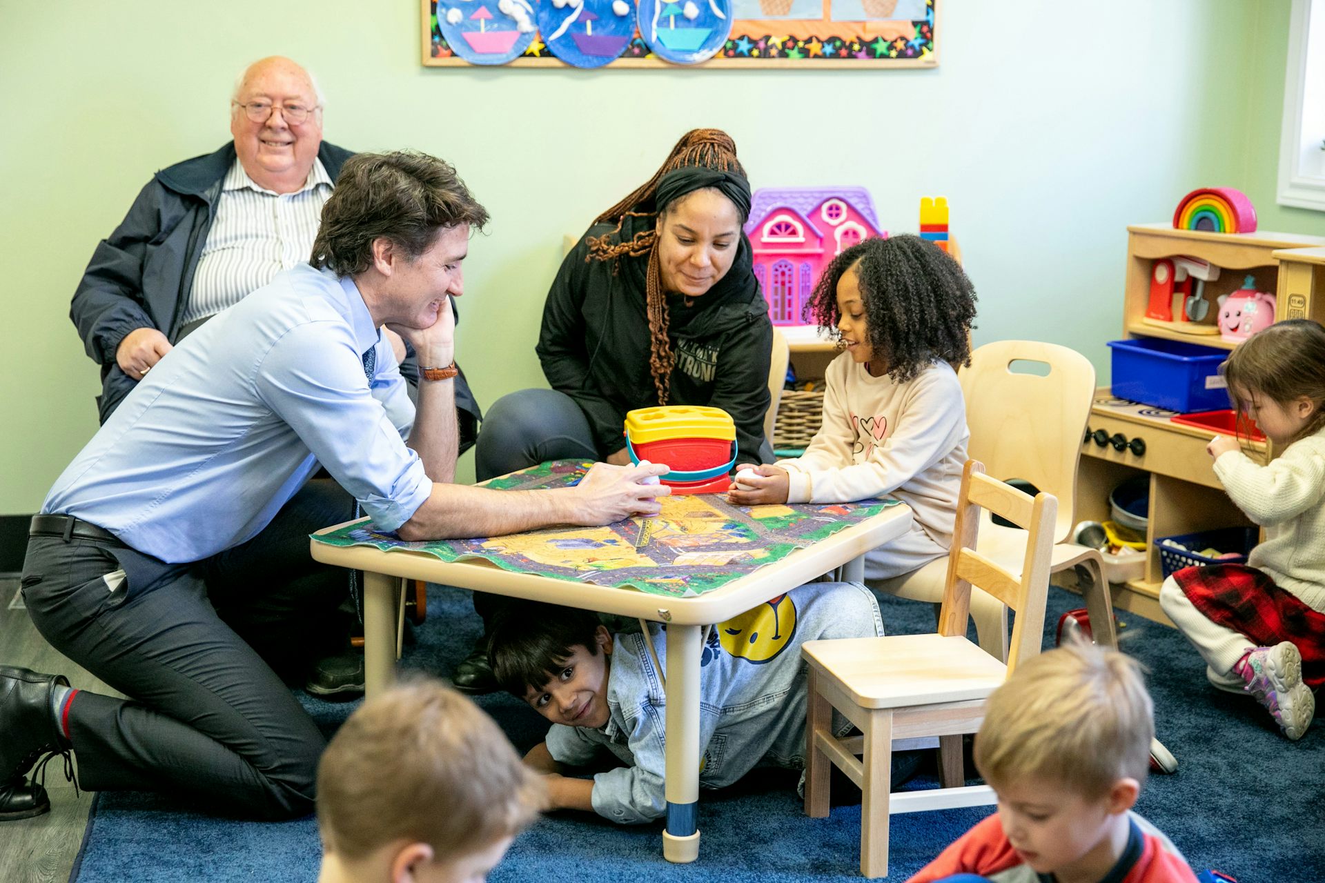 Affordability targets have been surpassed with $10-per-day child care the norm in much of the country, but depending on where you live, finding care can be onerous. Prime Minister Justin Trudeau visits a child-care centre in Dartmouth, N.S. on April 2, 2024.