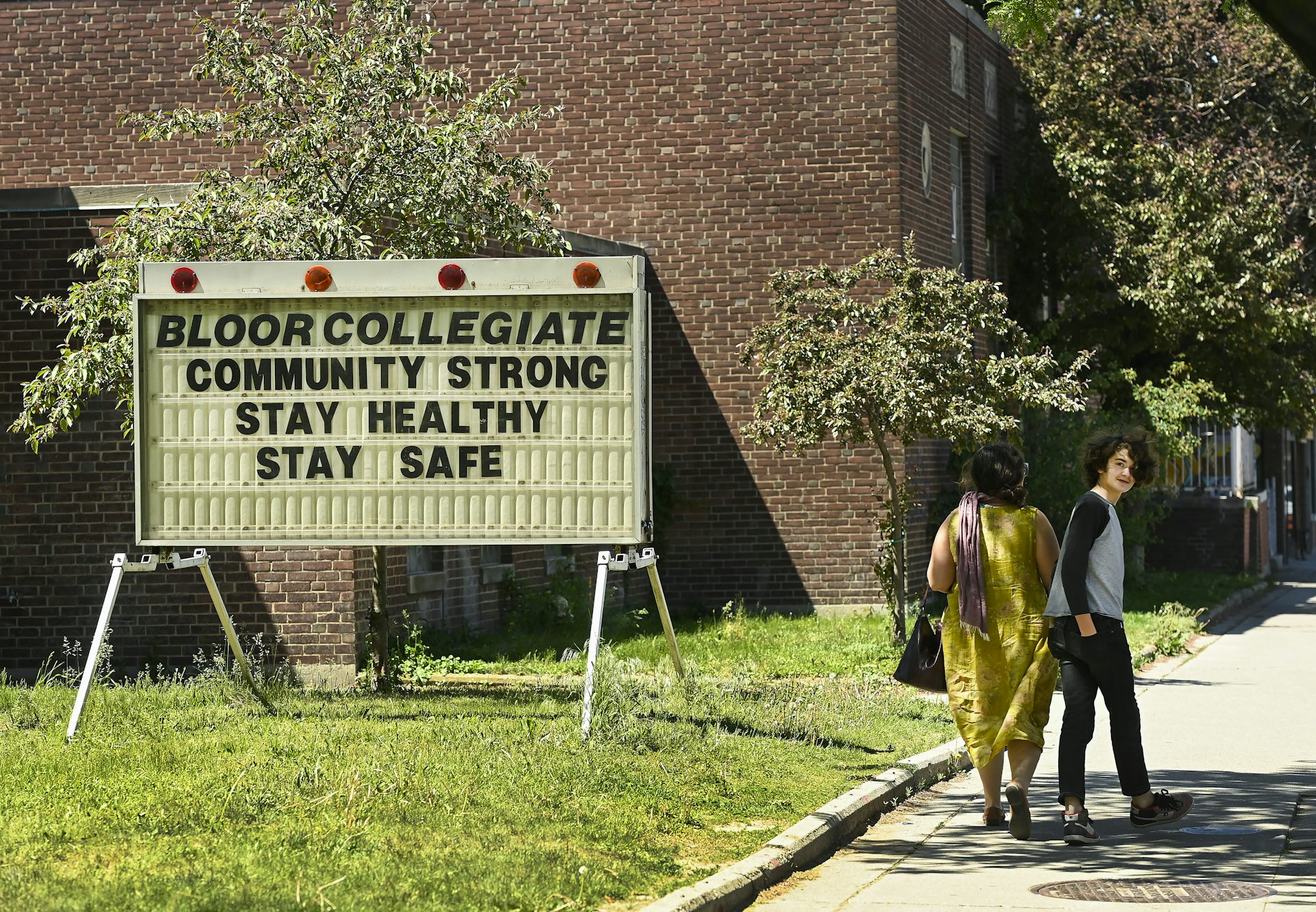 Research from Alberta points to the burden parents have faced with home learning. Here, a youth passes Bloor Collegiate Institute in Toronto, May 27, 2021.