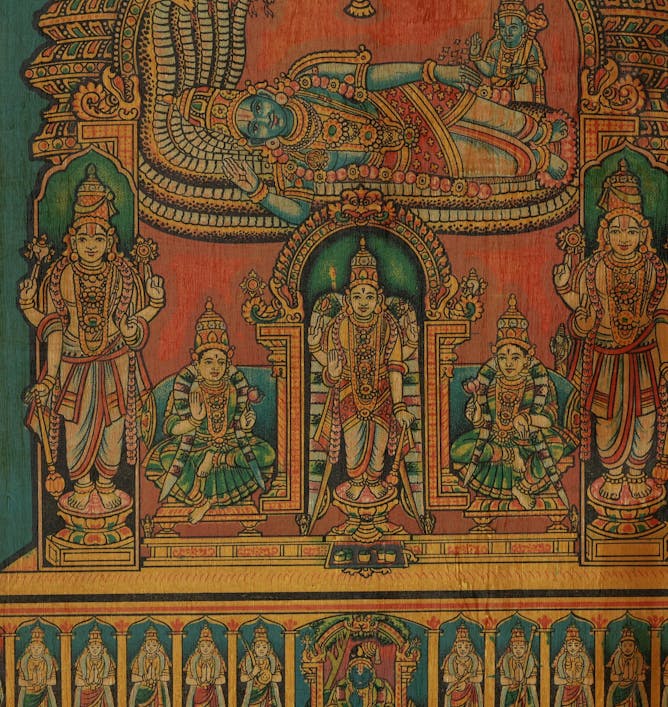 In Hindu devotional poetry, love directed toward Vishnu can take many forms, including service, maternal adoration and the intense intimacy of lovers. |