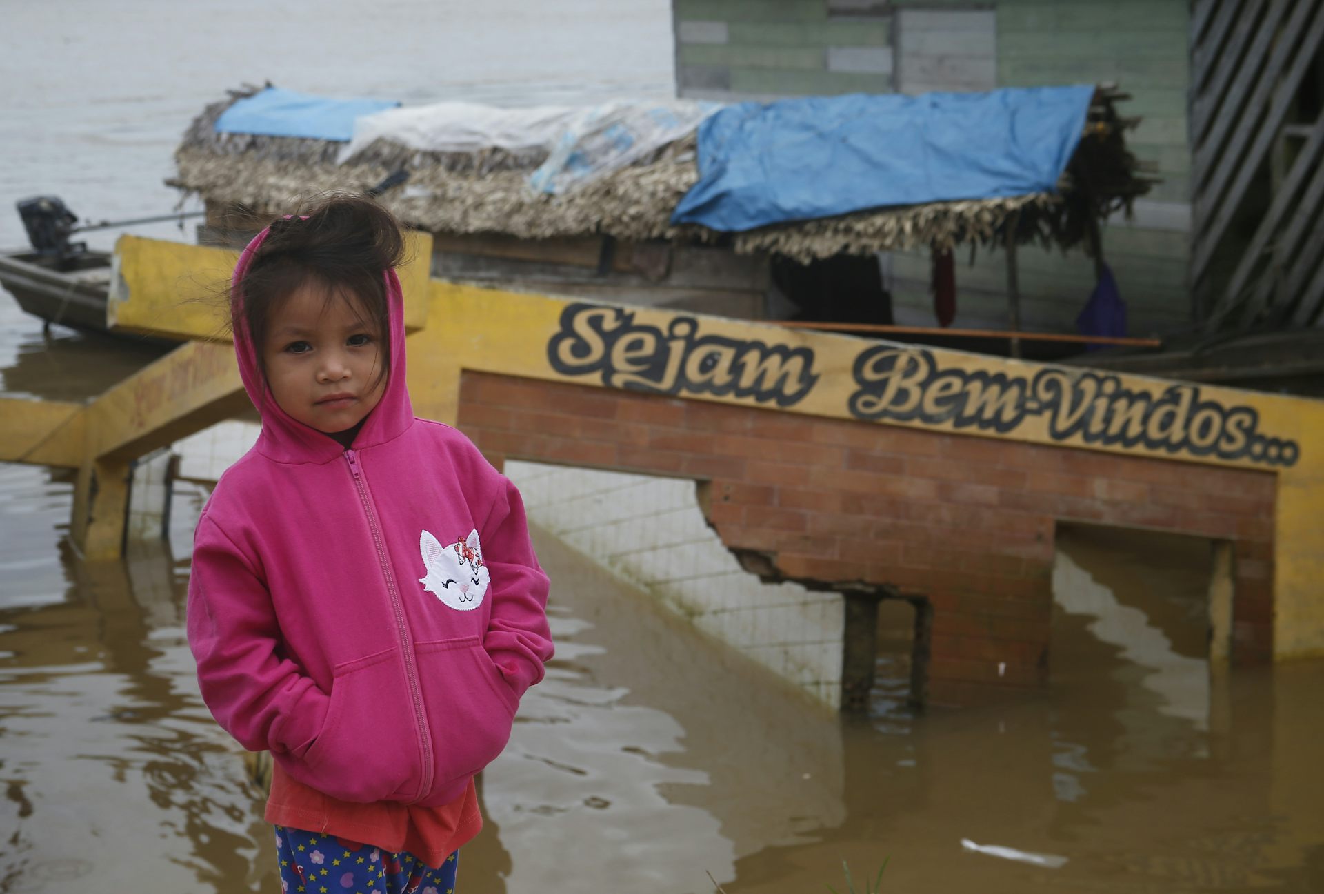 Une enfant autochtone du groupe ethnique Mayuruna se tient sur une jetée au bord de la rivière Atalaia do Norte dans l'état d'Amazonas, au Brésil, le 12 juin 2022. La police fédérale et les forces militaires mènent des recherches et des enquêtes sur la disparition du journaliste britannique Dom Phillips et de l'expert en affaires autochtones Bruno Araujo Pereira.