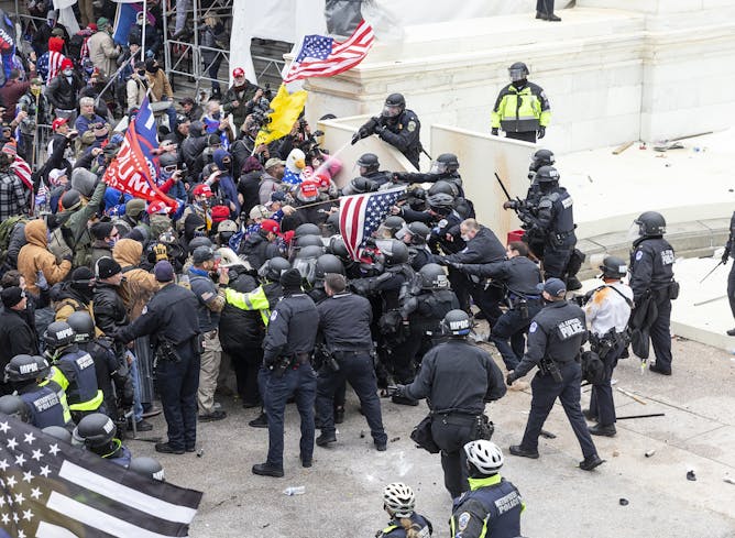Pro-Trump protesters and police clash on Jan. 6, 2021, at the U.S. Capitol.