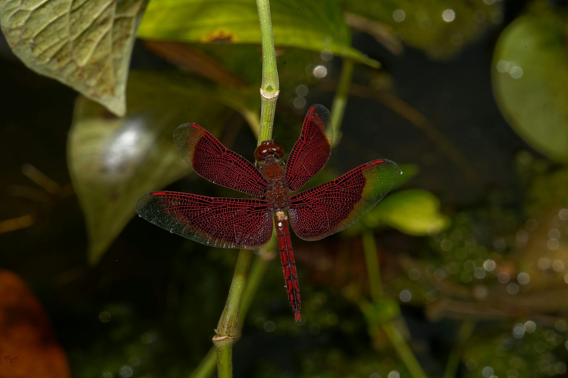 Une libellule-fleur sait voler de multiples façons. Neurothemis mâle, Parc National Sai Yok en Thaïlande.