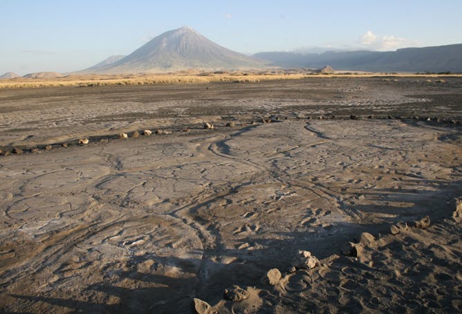 The footprints of over 20 different prehistoric people, pressed into volcanic ash thousands of years ago in Tanzania, show possible evidence for sexual division of labor in this ancient community.
