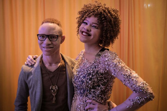 Mr Albinism Kenya Jairus Ongetta (L) and Miss Albinism Kenya Loise Lihanda pose at the Mr and Miss Albinism East Africa pageant.