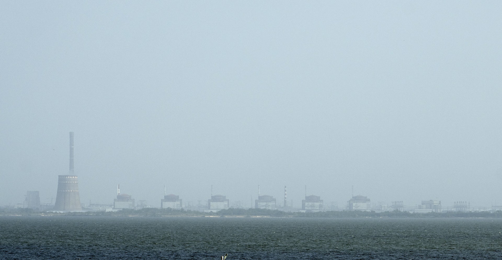 A view of the Russian-controlled Zaporizhzhya nuclear power plant on the Dnipro River near Nikopol, Ukraine.