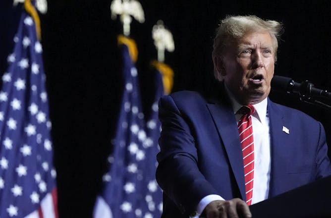 Republican presidential candidate and former U.S. President Donald Trump speaks in Rome, Ga. on March 9, 2024.