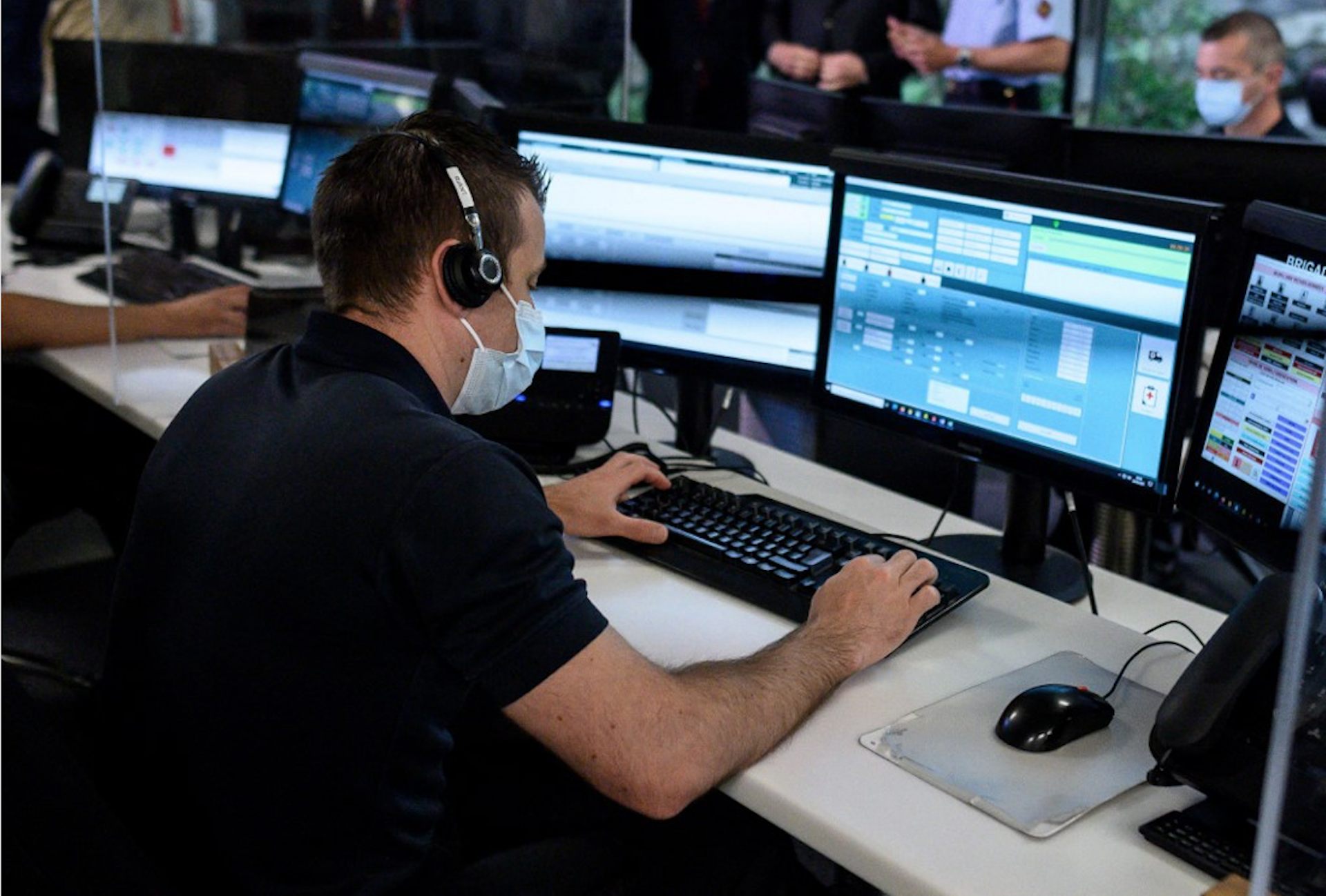 Un opérateur au centre d'appels de la caserne de pompiers Champeret à Paris.
