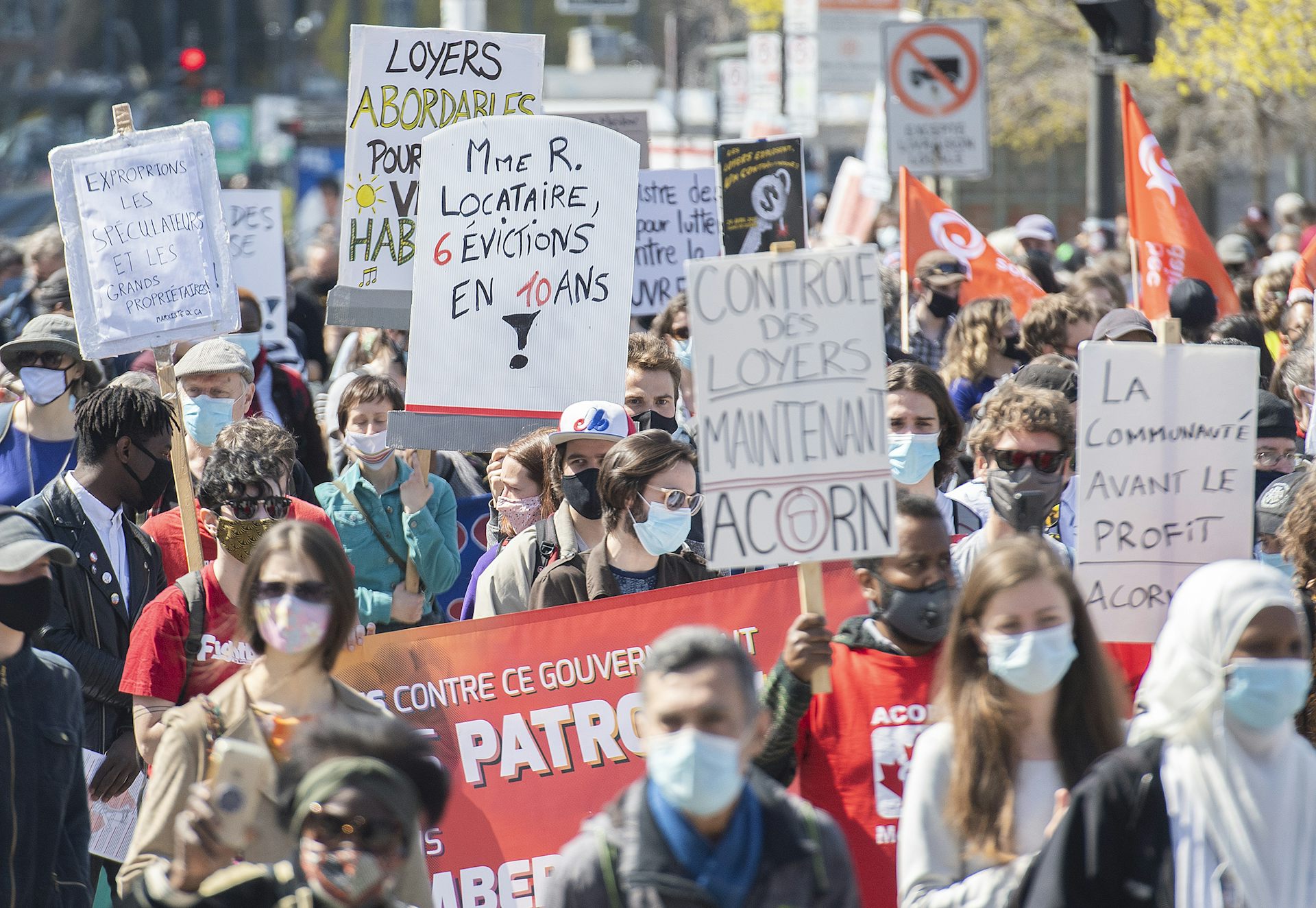 Des manifestants réclament davantage de logements sociaux et abordables à Montréal, le 24 avril 2021. Une des manières d'y parvenir serait grâce à la fiscalité.