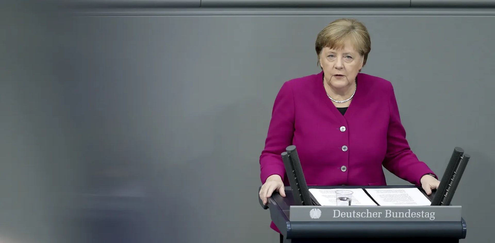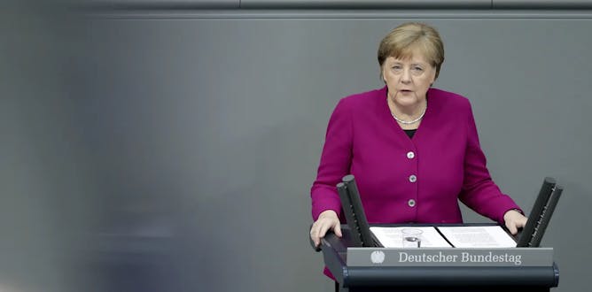 German Chancellor Angela Merkel addresses the German Federal Parliament, the Bundestag, in Berlin. Germany has managed the coronavirus crisis more successfully than its neighbours.