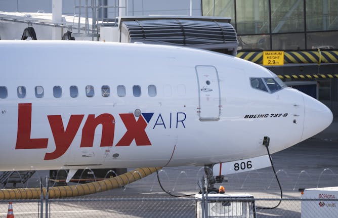 Un Boeing 737 de Lynx Air à l’aéroport international de Calgary, le 23 février 2024. Les responsables de Lynx ont annoncé le 22 février que la compagnie cesserait ses activités à compter du 26 février à minuit.