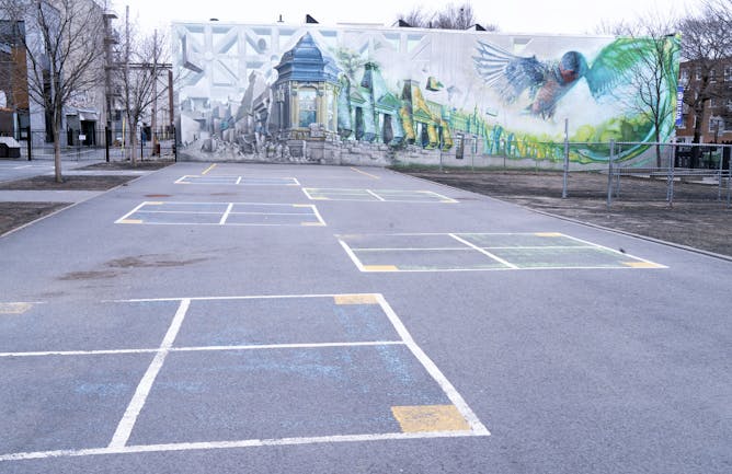 Une cour d'école fermée, à Montréal, le lundi 27 avril 2020. Le gouvernement du Québec a donné des détails sur la manière dont il prévoit rouvrir progressivement ses écoles.