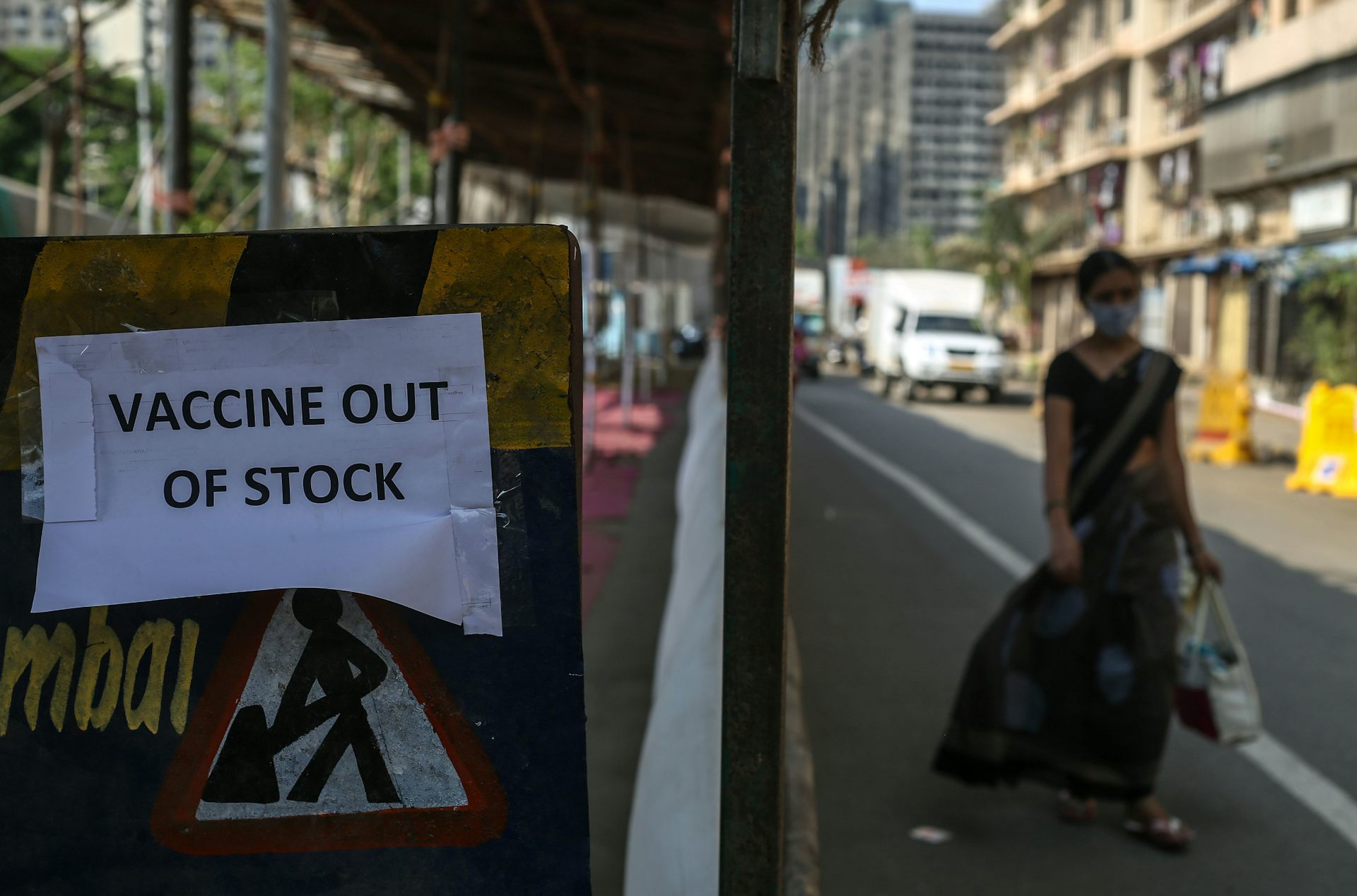 A vaccination centre in Mumbai, closed due to lack of supplies in late April.