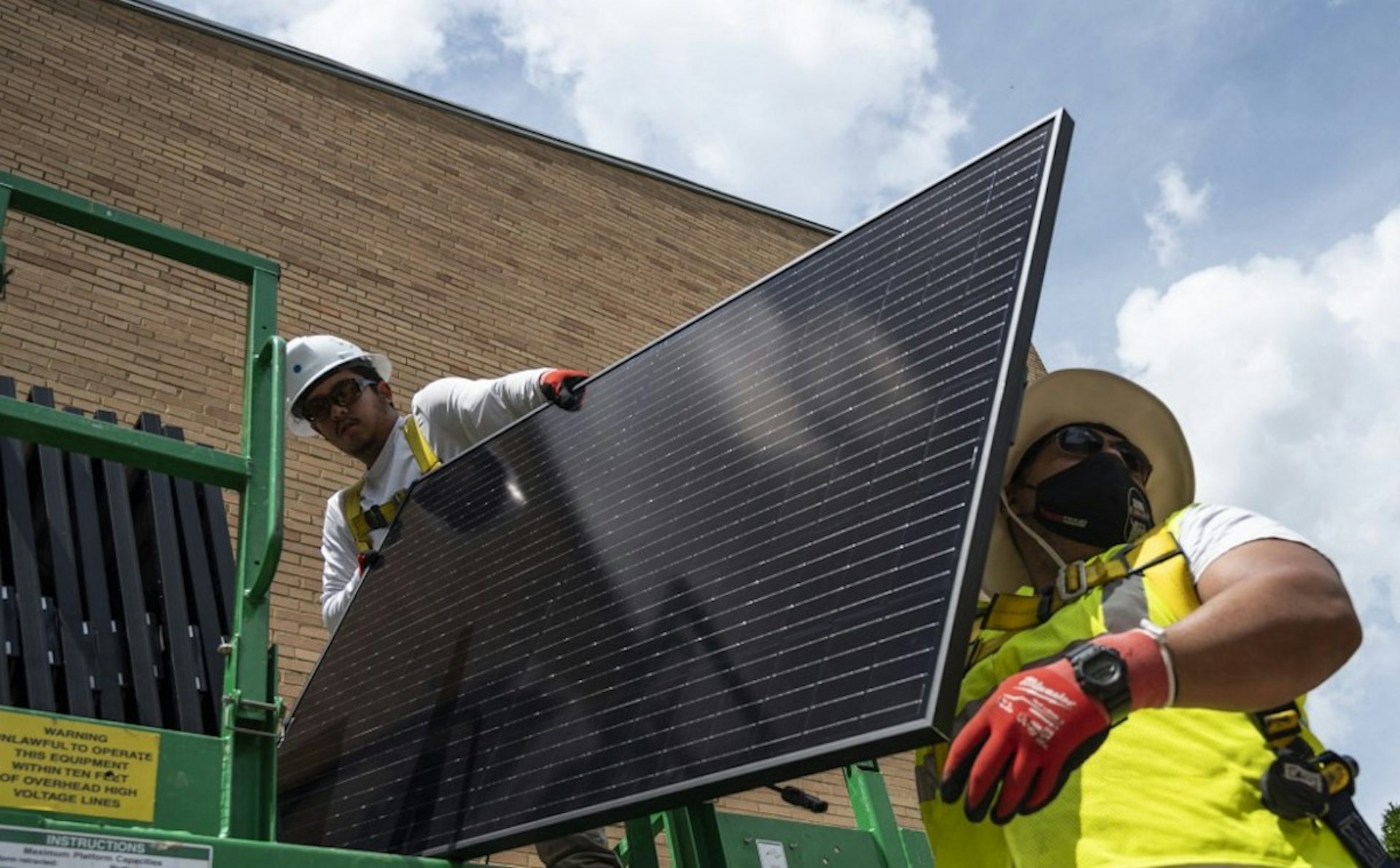 Installation de panneaux solaires à Alexandria, aux États-Unis en mai 2021.